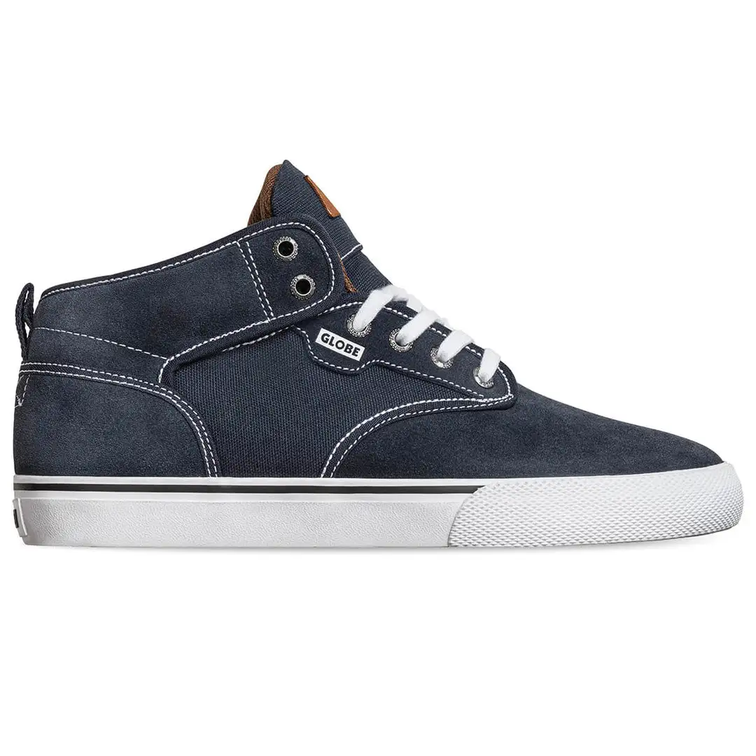 Designed for skateboarding, the Motley Mid is a vulcanized mid-cut skate shoe featuring a seamless toe, padded mid-cut collar for ankle protection, and reinforced toe and heel for durability. Constructed from a durable action leather and mesh combination with Globe’s Shockbed™ insole for lasting impact control.