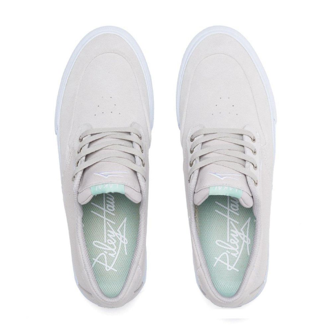 Riley Hawk’s third pro model shoe. Inspired by one of Riley’s favorite classic Lakai models, the Belmont. Constructed with a suede hidden seam toe-cap, embroidered micro flare, and Para-mount outsole with Purple translucent Hex-Tread.