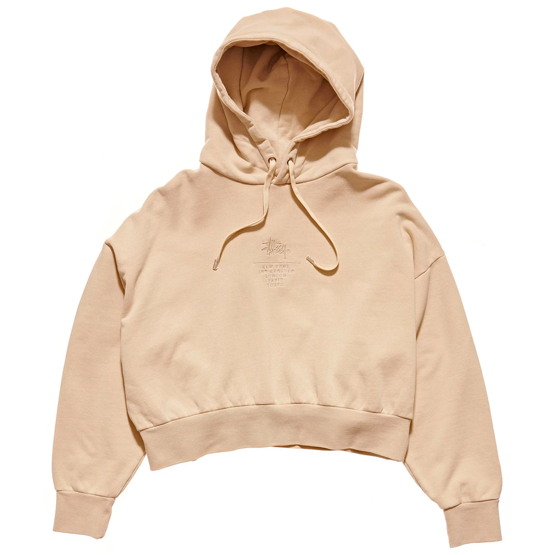 The Stussy Cities Hoodie is a 50% Cotton/50% Recycled Cotton Fleece O/S Hood. This style features a Slightly cropped main body, Embroided logo at the front chest, Two-piece hood, Drawcord and then finished with Rib knit cuffs and hem.
